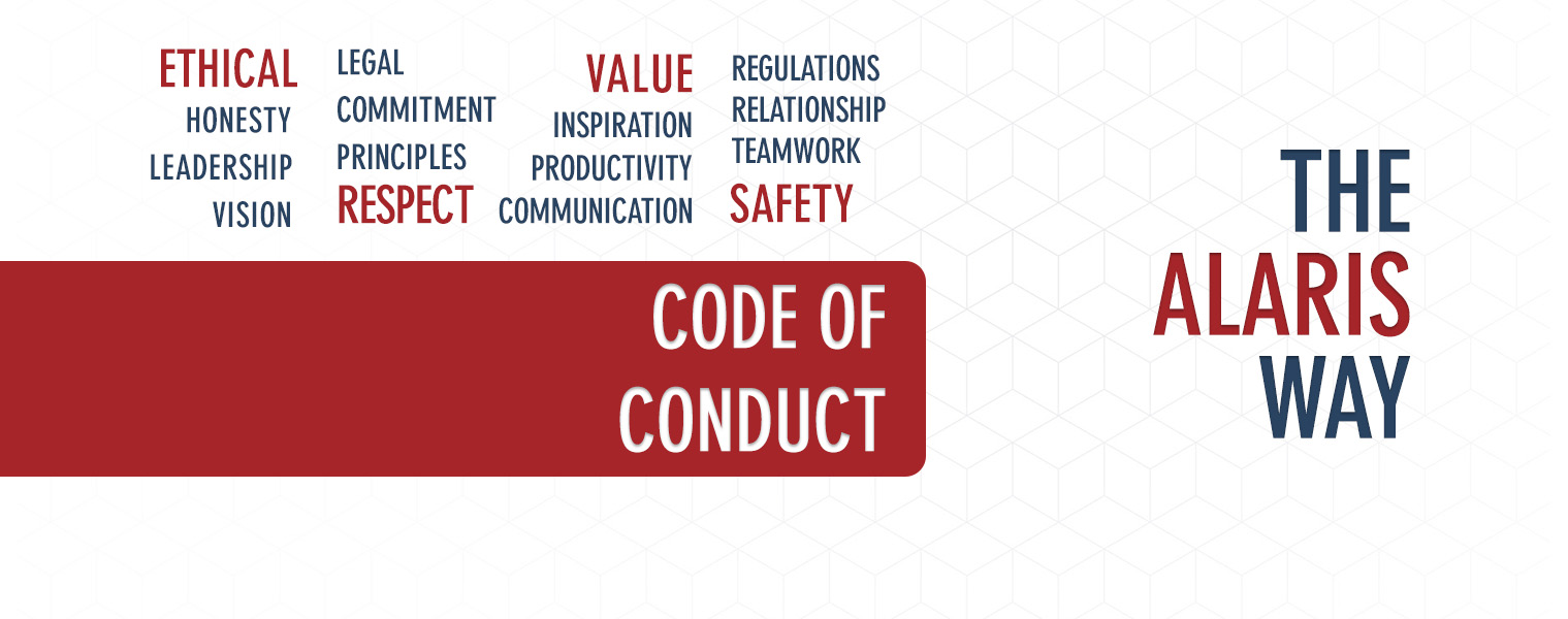 The ethics standards and compliance policies contained in this website assure that all Alaris employees, associates, partners and representatives have a guide to best practices and proper business conduct. The Alaris Code of Conduct informs our individual business decisions and actions, giving us a clear path to ethical business behavior.
